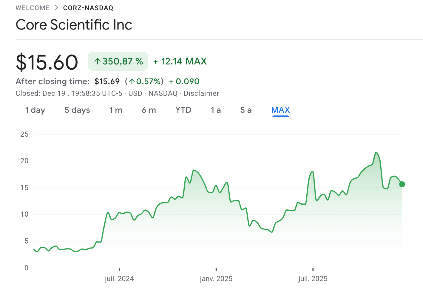 Core Scientific caught my attention because CoreWeave tried to acquire them. Why? Because this former Bitcoin mining company is moving to critical infras for AI. Yes, they are going to another use case because it uses the same expertise as what they formerly did (still does for now). That is for me the signal, because high density… man lots of folks do it: Digital Realty, Equinix.. so what makes it special is the face of the chart, the volatile situation and the market talking about it as a BTC miner, for me, there is an asymmetry.