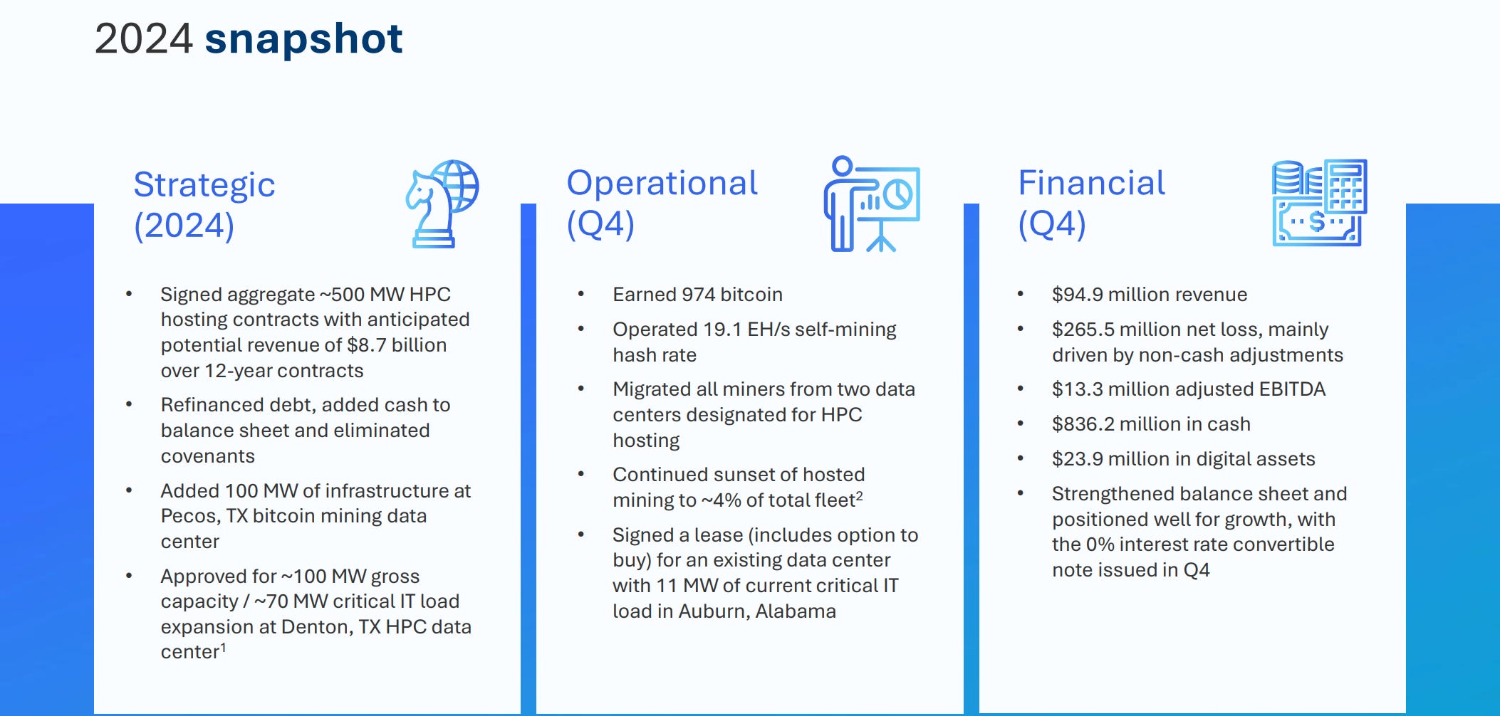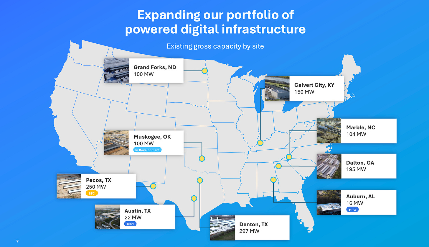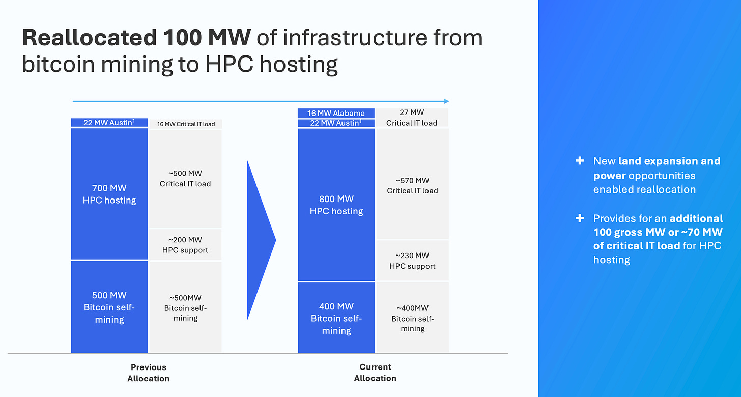 In the Q3 2024 deck, they show they reallocated 100 MW of infrastructure from bitcoin mining to HPC hosting (HDC’s earlier label).