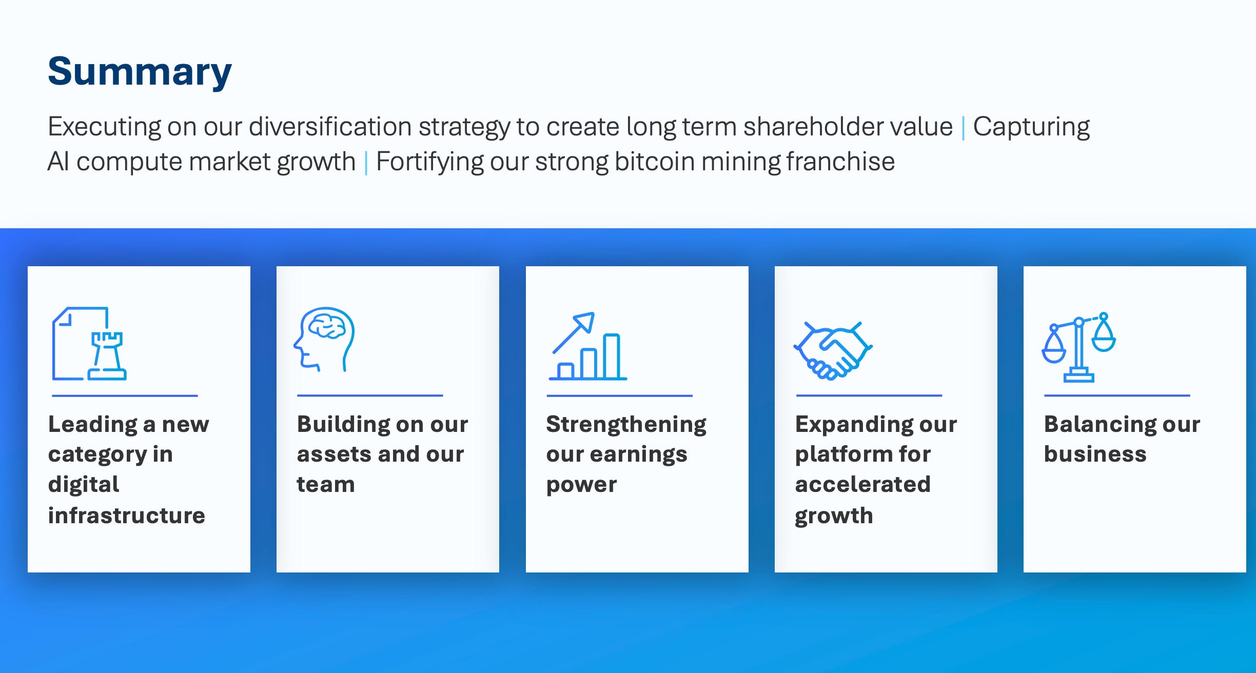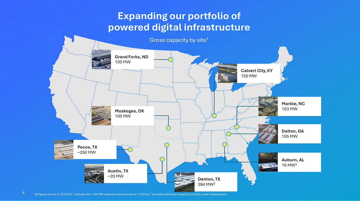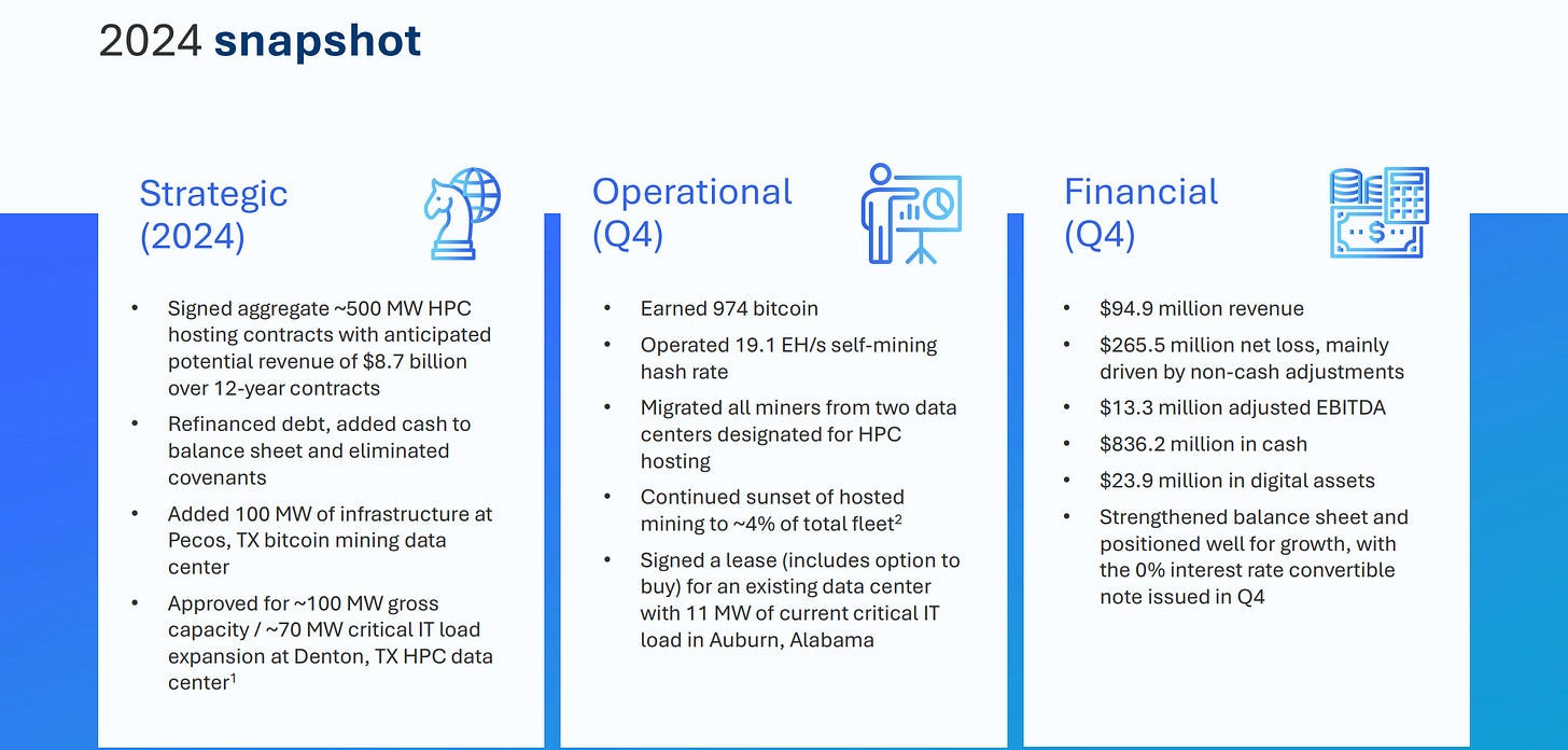 In the Q3 2024 deck, they show they reallocated 100 MW of infrastructure from bitcoin mining to HPC hosting (HDC’s earlier label).