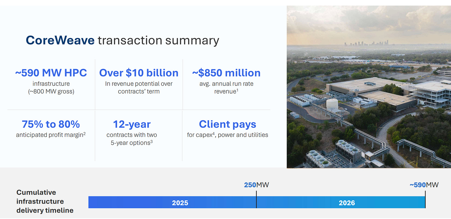 Core Scientific is interesting because it sits right on that seam. It used to monetize megawatts by mining Bitcoin. Now it’s trying to monetize megawatts by leasing them as “vault capacity” to high-density customers. The upside is clean: if they execute, the company gradually stops being priced like a miner and starts being priced like contracted infrastructure. The risk is also clean: the transition is still early, heavily dependent on one anchor customer, and the real bottleneck is execution under load (delivery, cooling, reliability).