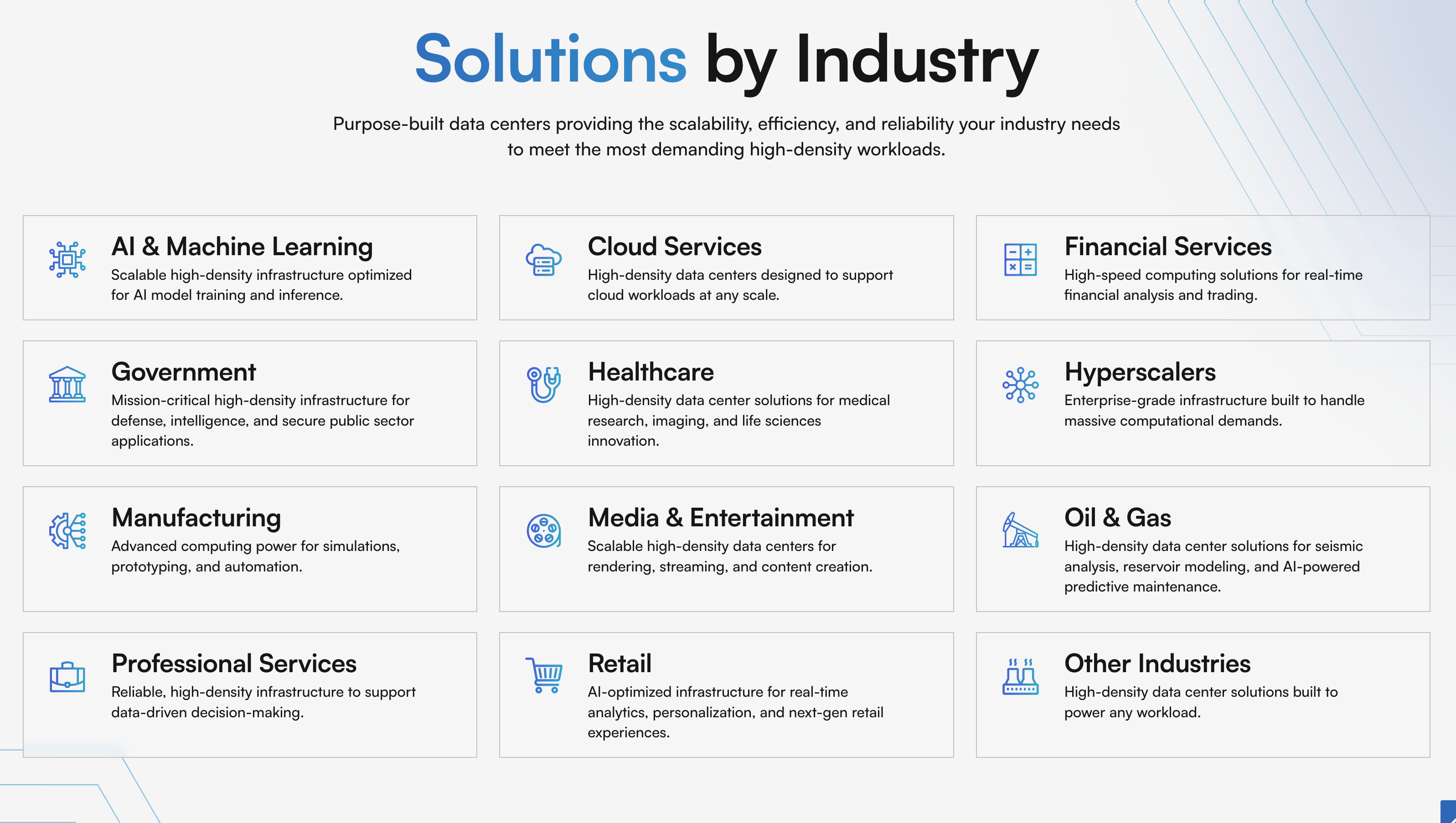 What they sell: high-power data center space that can handle very dense racks (often GPU clusters).